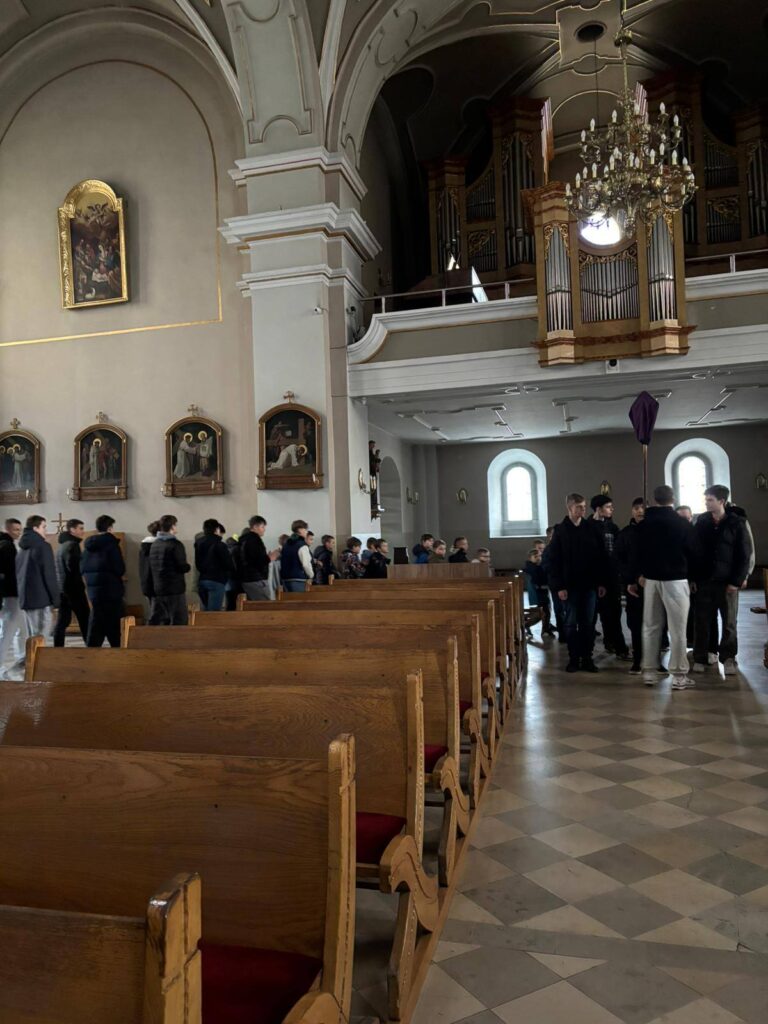 Zaczęliśmy od krótkiego spotkania w salce, a potem przenieśliśmy się do kościoła, gdzie ćwiczyliśmy przebieg liturgii Triduum Paschalnego – szczególnie procesje na Wielki Czwartek, Piątek i Sobotę. Było dużo skupienia i pracy, bo przed nami wyjątkowy czas. ✝️